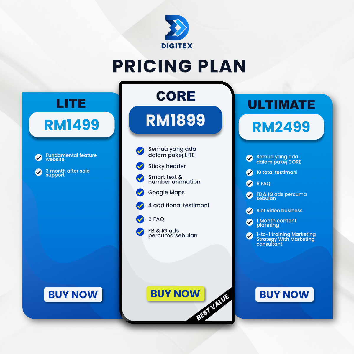 Digitex menawarkan 3 jenis pakej.